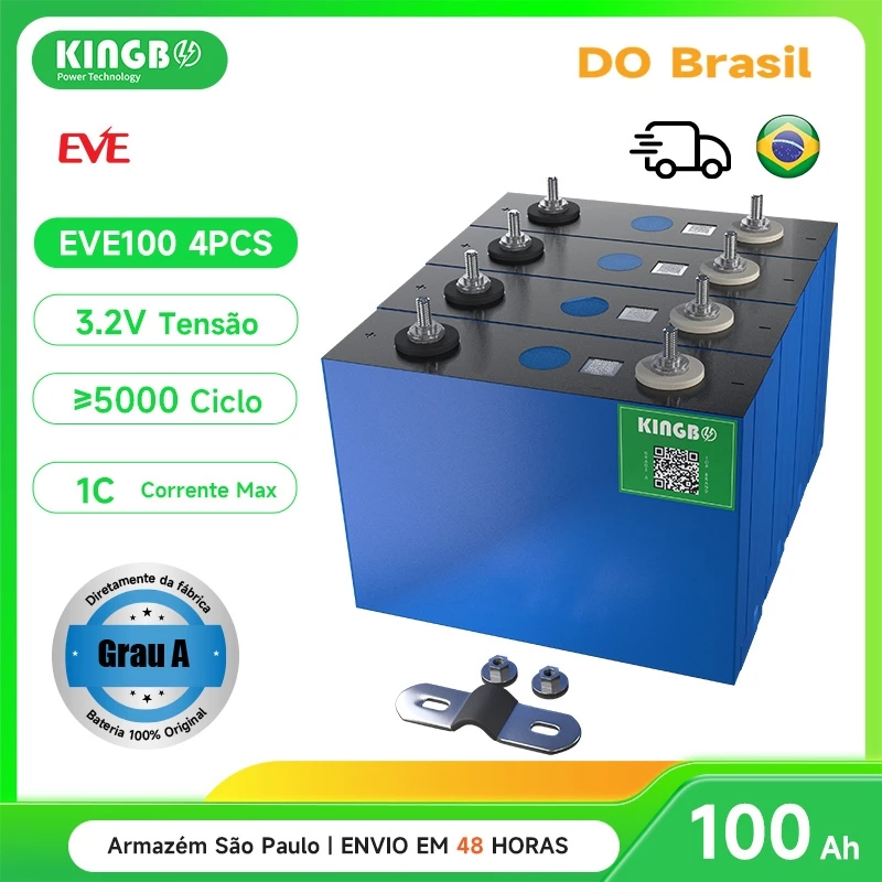 Kingbo Power 4PCS EVE100Ah lifepo4 Bateria 3.2V Grau A DIY 12V 24V 48V Bateria de armazenamento para sistema solar off-grid. Superior as baterias estacionárias.